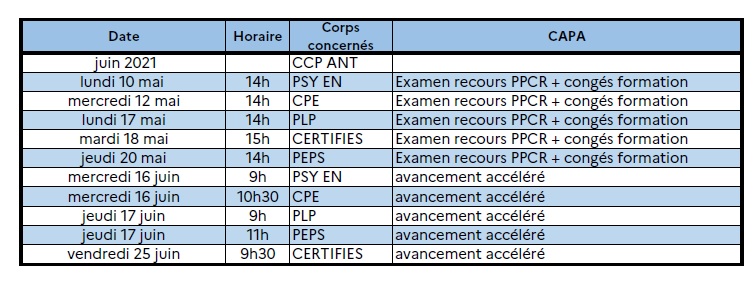 Publié le 29/03/2021 Calendrier prévisionnel des CAPA mai et juin 2021 Le calendrier ci-dessous est prévisionnel : il peut être amené à être modifié.
