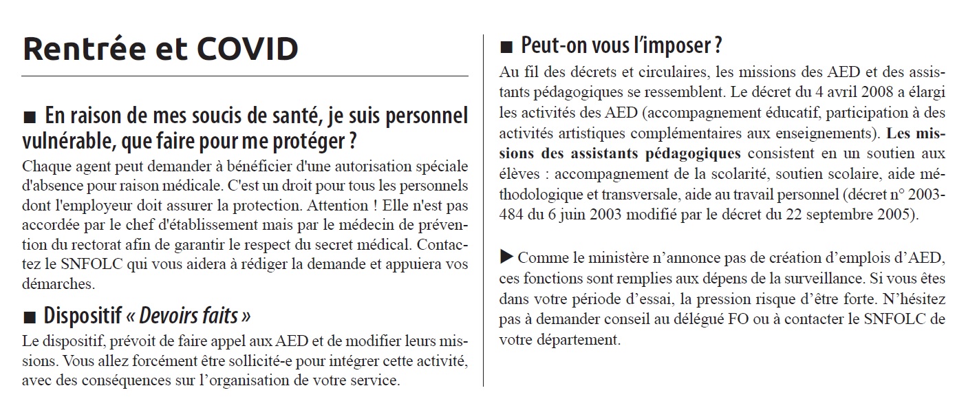 Septembre 2021, les AED débutent une nouvelle rentrée difficile : COVID, protocoles qui s’accumulent, nouvelles soi-disantes obligations…