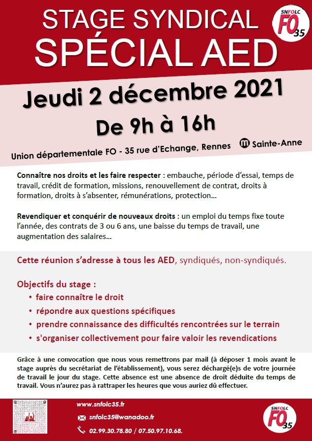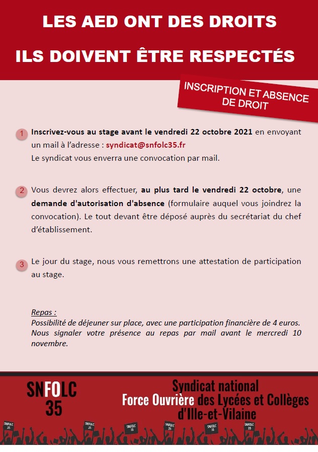 SNFOLC 35 > Personnels > AED - AESH > Stage AED le 2 décembre 2021