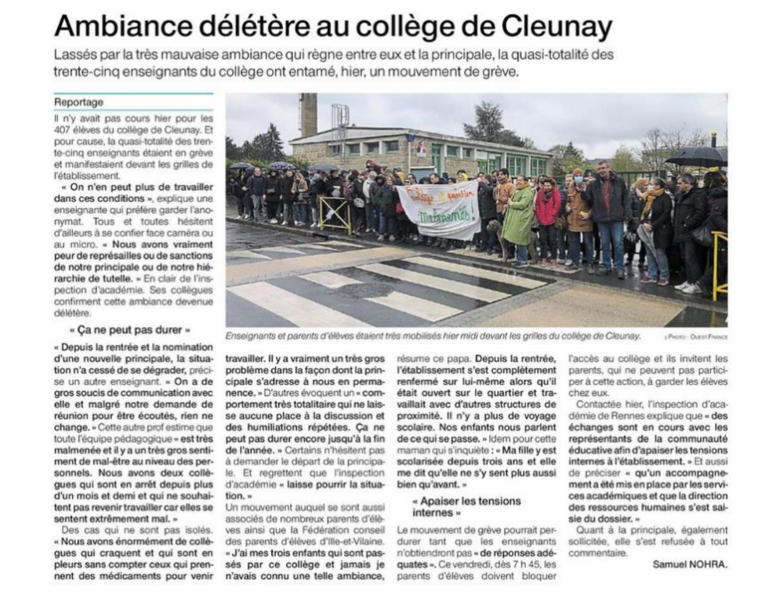 SNFOLC 35 > Actions ! > Cleunay : mobilisation du 31 mars médiatisée dans Ouest-France