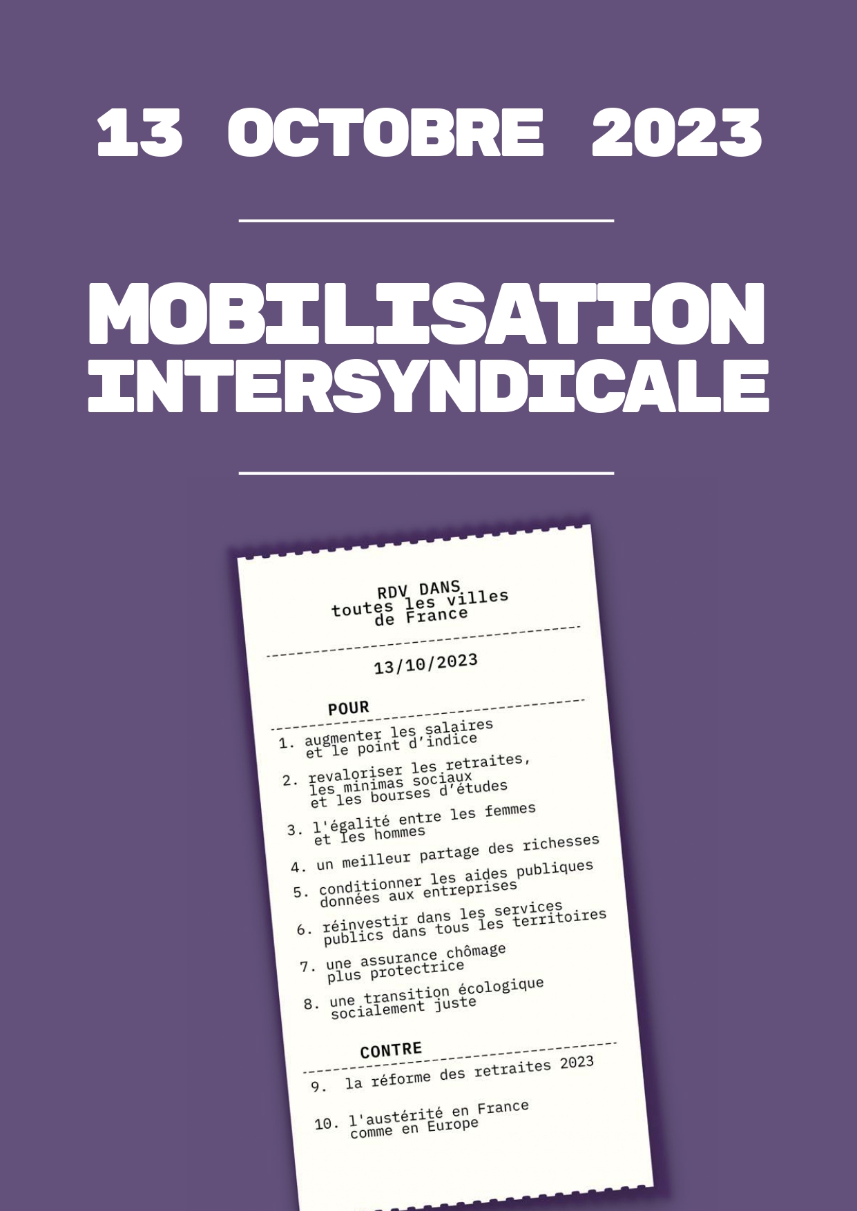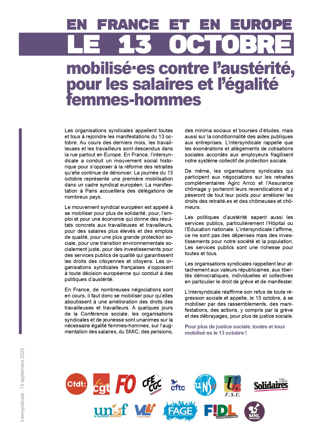 Les organisations syndicales appellent toutes et tous à rejoindre les manifestations du 13 octobre.