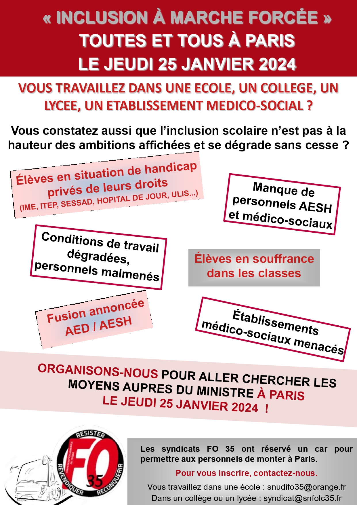 Les syndicats FO 35 ont réservé un car pour permettre aux personnels de monter à Paris.