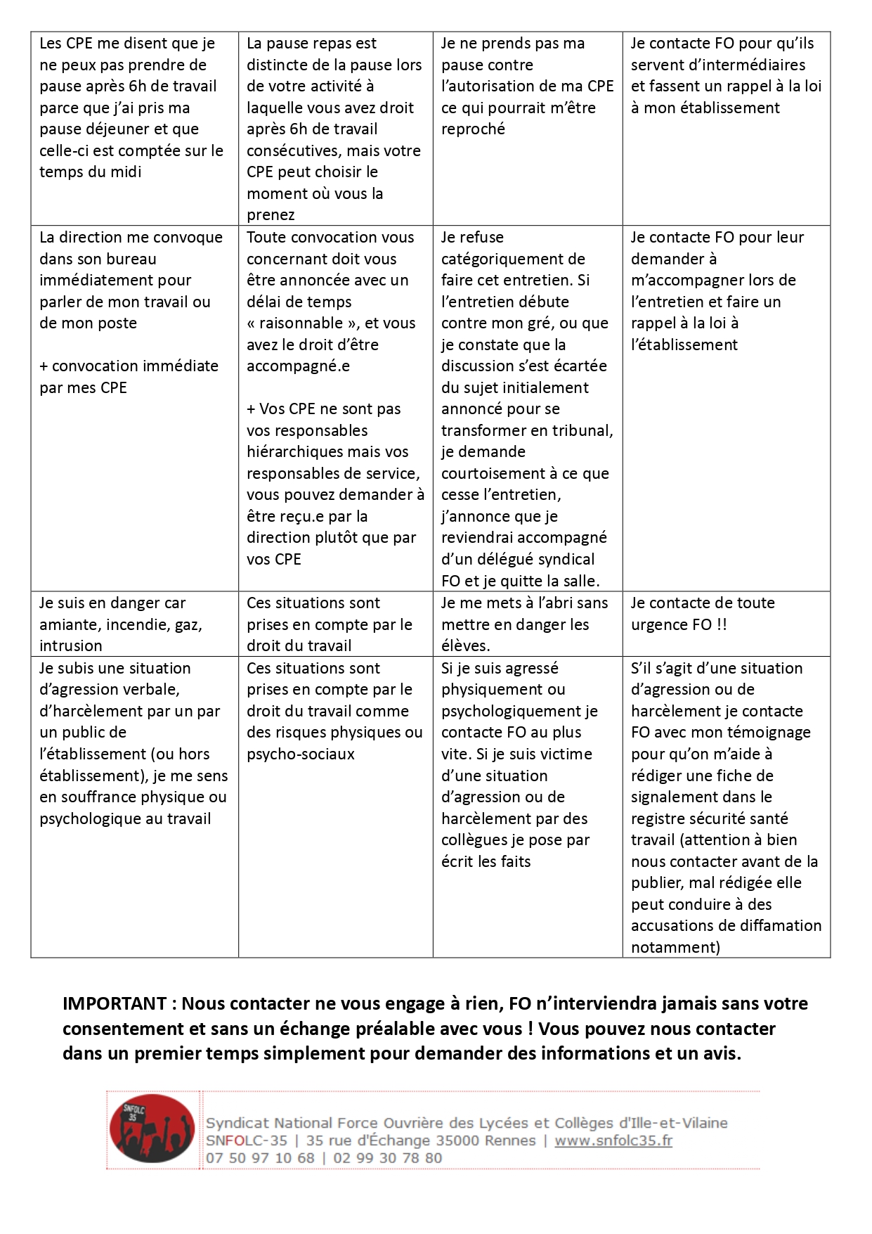Important : l’intervention du syndicat permet bien souvent de dénouer les problèmes. Contactez-nous !