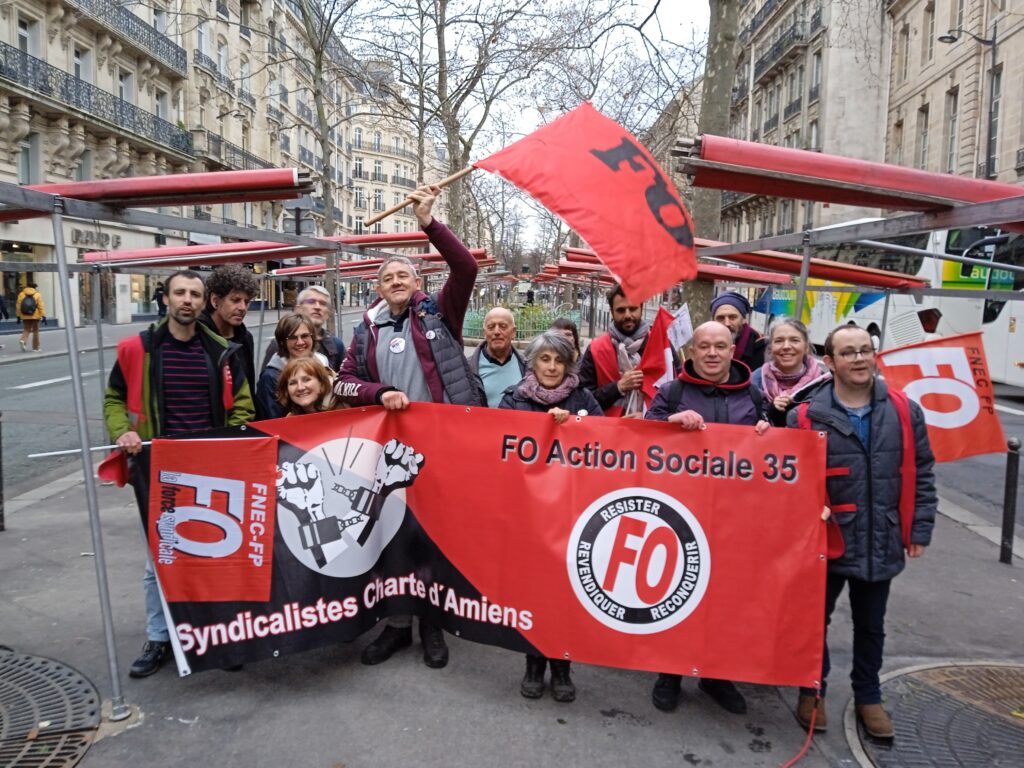 C’est pourquoi les syndicats FORCE OUVRIÈRE D’ILLE-ET-VILAINE de l’Éducation nationale (SNFOLC 35 et SNUDI FO 35) et de l’Action sociale (SDAS FO 35) ont appelé à se mettre en grève le jeudi 25 janvier 2024 et à rejoindre la grande manifestation nationale à Paris : des cars FO de toute la France ont afflué sur la capitale pour permettre aux personnels et aux parents d’élèves de porter toutes et tous ensemble les revendications au ministère de l’Éducation nationale, rue de Grenelle.