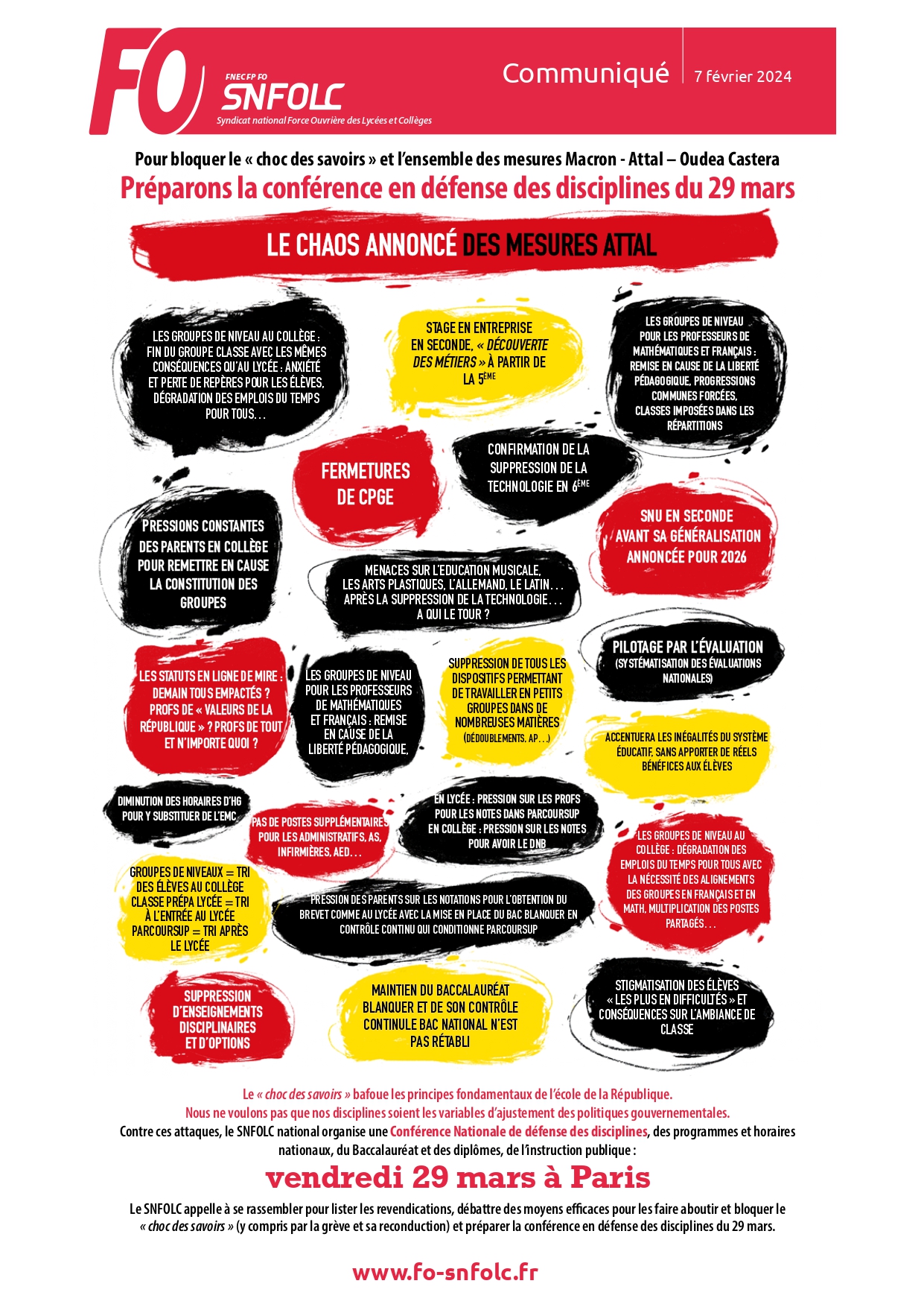 Publié le 12/02/202412/02/2024 Conférence nationale FO : le choc des savoirs, la défense des disciplines