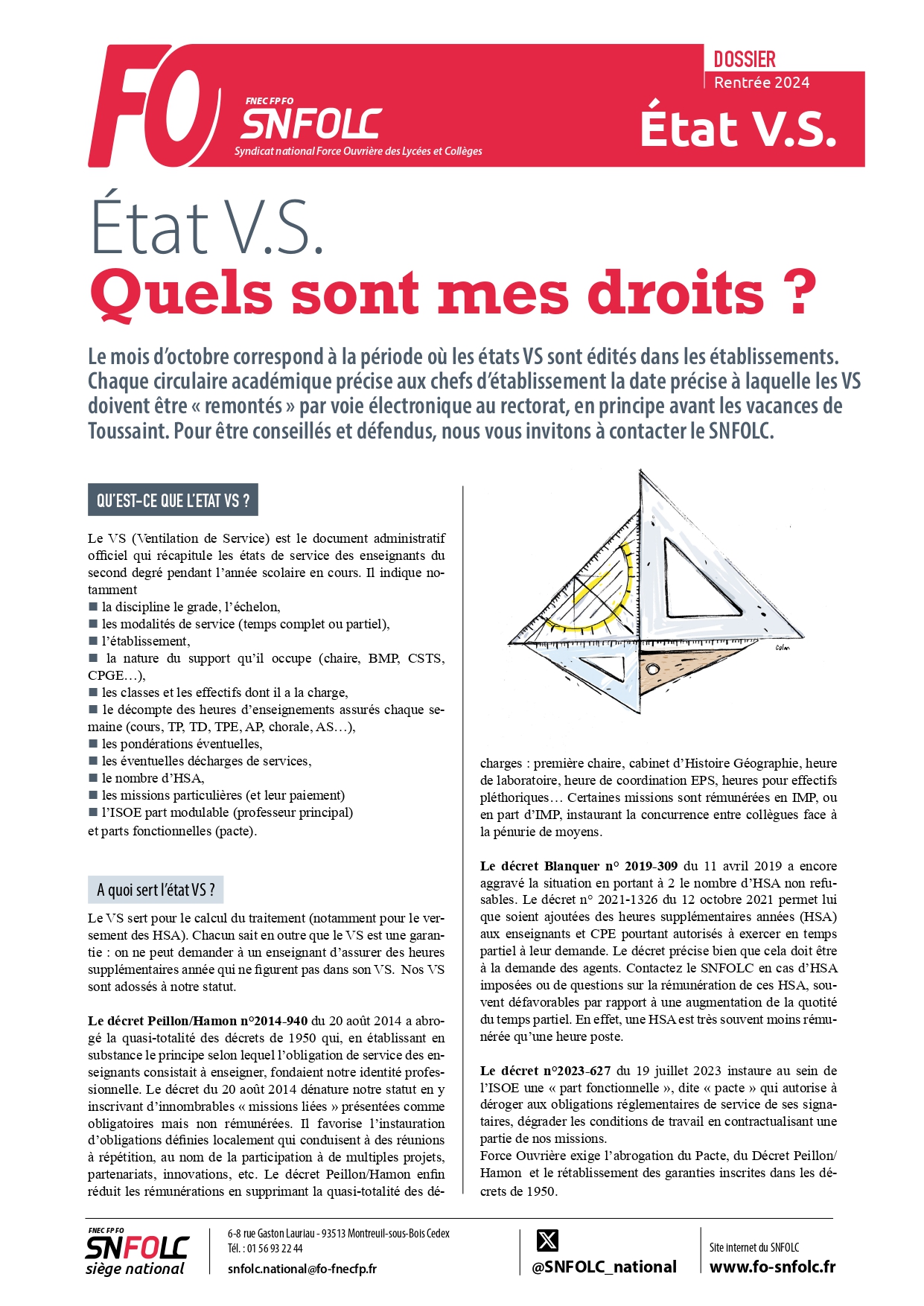 Chaque circulaire académique précise aux chefs d’établissement la date précise à laquelle les VS doivent être « remontés » par voie électronique au rectorat, en principe avant les vacances de Toussaint. Pour être conseillés et défendus, nous vous invitons à contacter le SNFOLC.