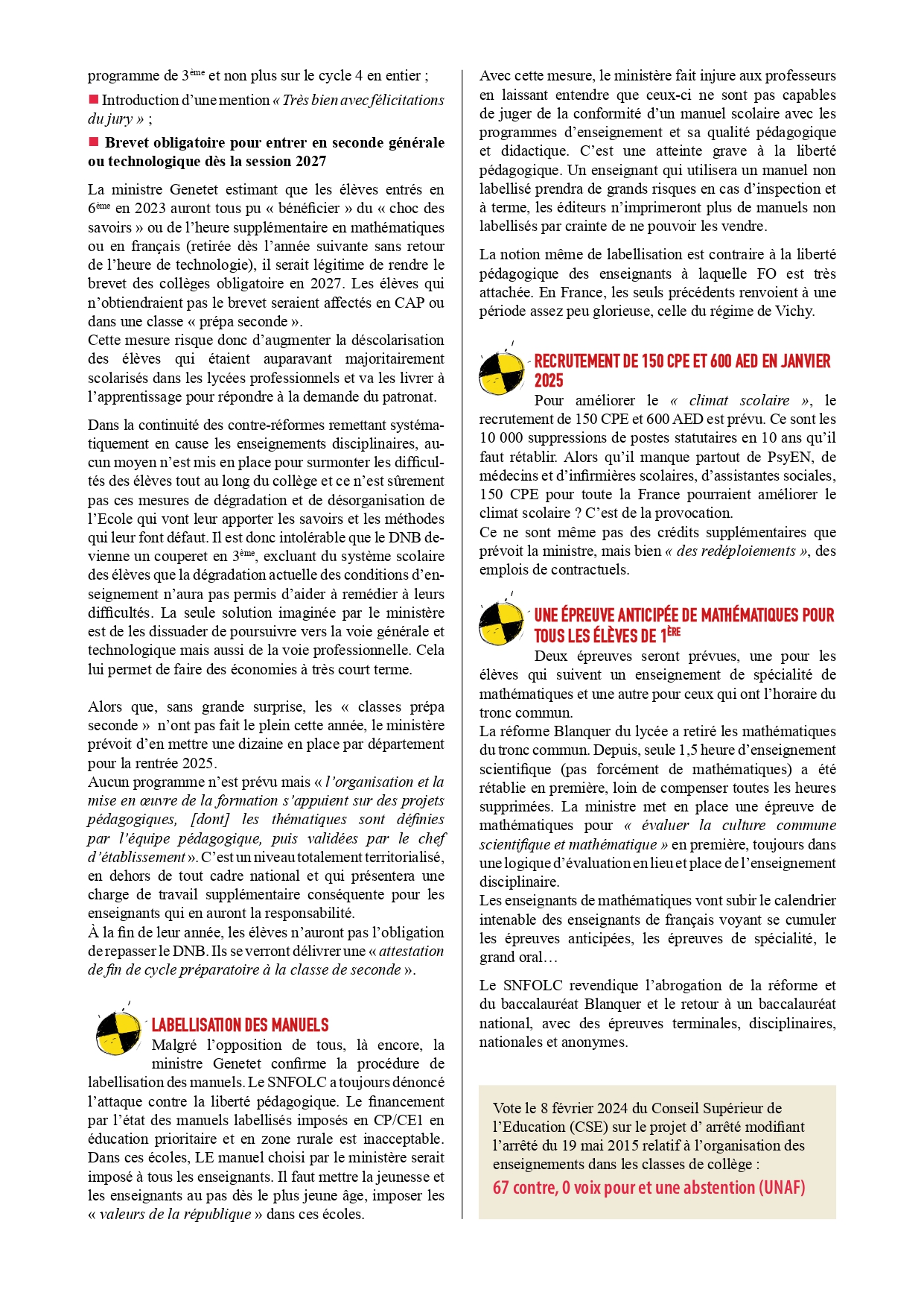 Les annonces de Genetet vont encore plus loin que les décrets et arrêtés du 17 mars organisant le « choc des savoirs »…
