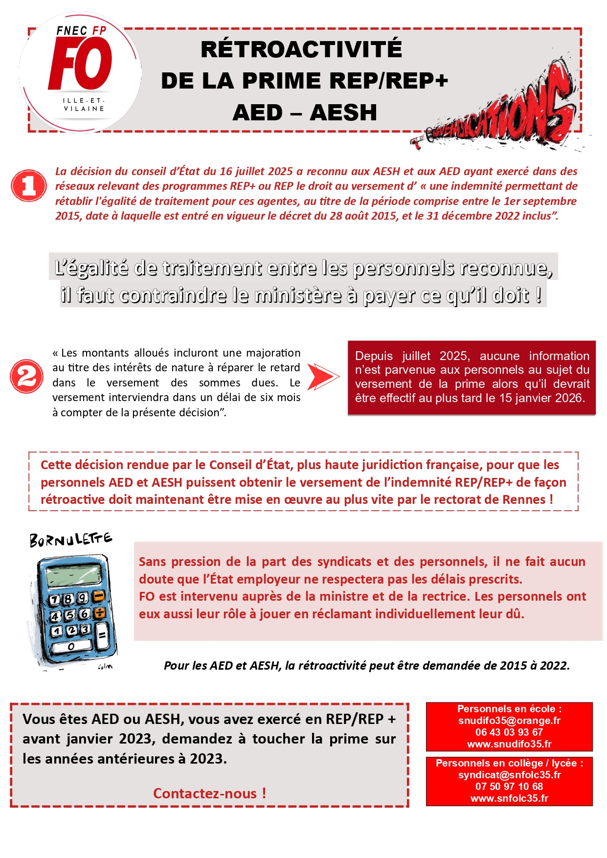 La décision du conseil d’État (CE, 16 juillet 2025, n° 50042, Ministre de l’éducation nationale, de l’enseignement supérieur et de la recherche) confirme que FO a eu raison de lancer la campagne de recours pour la rétroactivité de la prime REP/REP+.