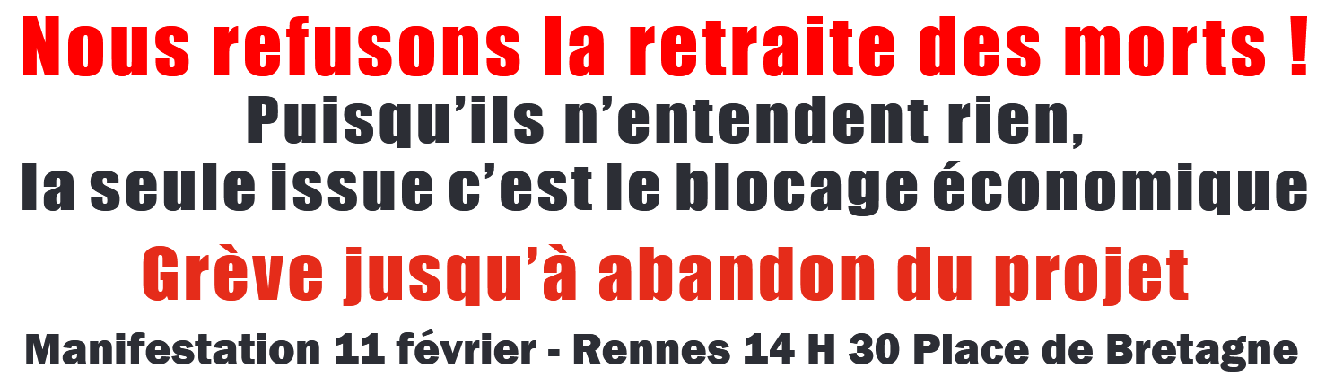 – jeudi 2 mars à 10h30 : l’intersyndicale appelle à un rassemblement devant le MEDEF 35 à 10H30 ( allée du batiment St Grégoire). Il s’agit de mettre le MEDEF face à ses responsabilités .