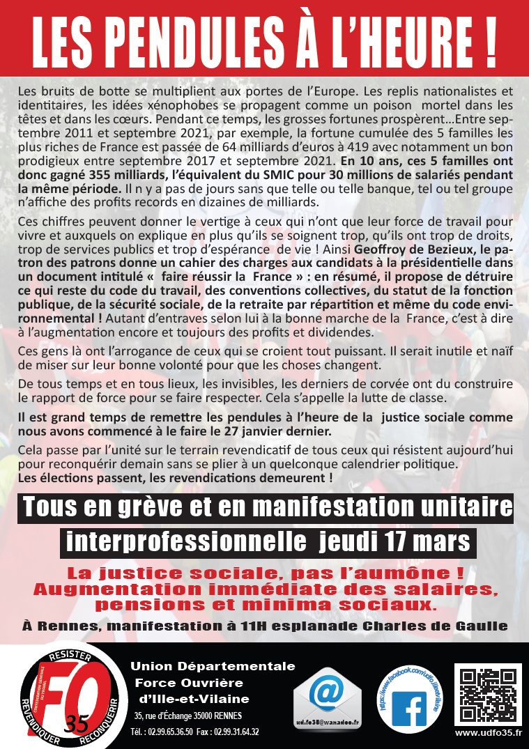 L’UD FO a fait en sorte pendant les 3 réunions préparatoires que le texte commun se situe au maximum sur un terrain syndical et non sociétal comme c’était le cas au début.