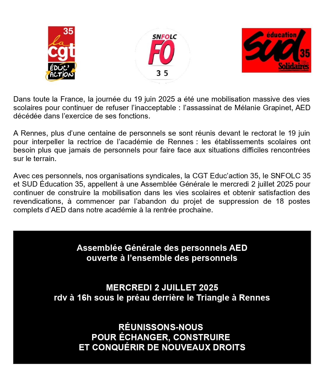 La FNEC FP-FO sera toujours aux côtés des travailleurs et de la jeunesse, aux côtés de tous ceux qui résistent, contre l’oppression et l’exploitation, et pour la défense des revendications et des libertés démocratiques.
