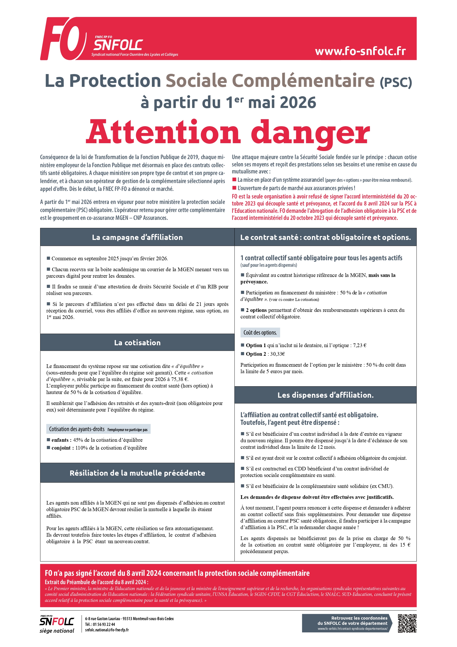 Pour accomplir ces démarches complexes, vous n’êtes pas seuls. Les militants du SNFOLC sauront vous informer, vous conseiller, vous aider à estimer le montant des sommes dues, à constituer votre dossier et veilleront au respect de vos droits par l’administration.